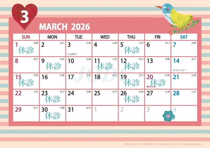 3/20(金)は春分の日の祝日であるため休診とさせて頂きます。