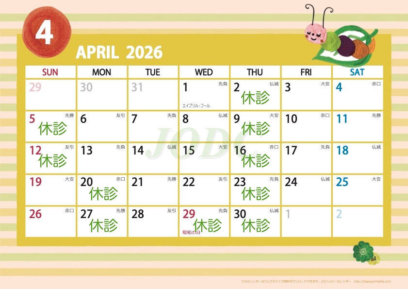 2026年4月の診療日が決まりました。